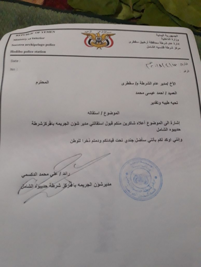 إلى ذلك ، استقال عدد من المسئولين الأمنيين بينهم قائد شرطة حديبو ومدير فرع المؤتمر الشعبي العام ومدير شرطة السير ومدير شرطة حديبو الشامل.