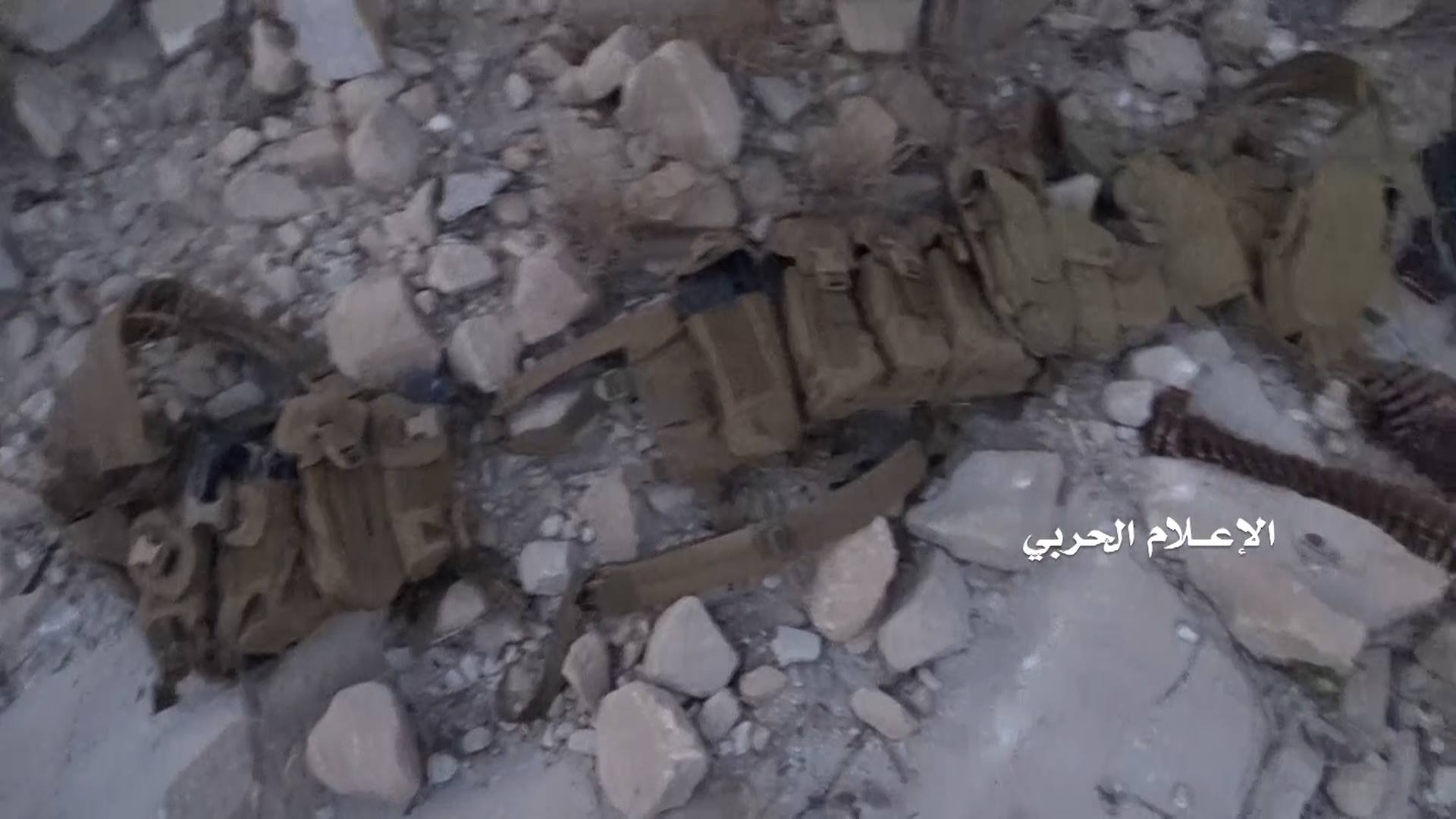كما تظهر الصور اغتنام الجيش واللجان الشعبية لعتاد كبير من الاسلحة والذخائر في المواقع بعد ان تم السيطرة عليها .